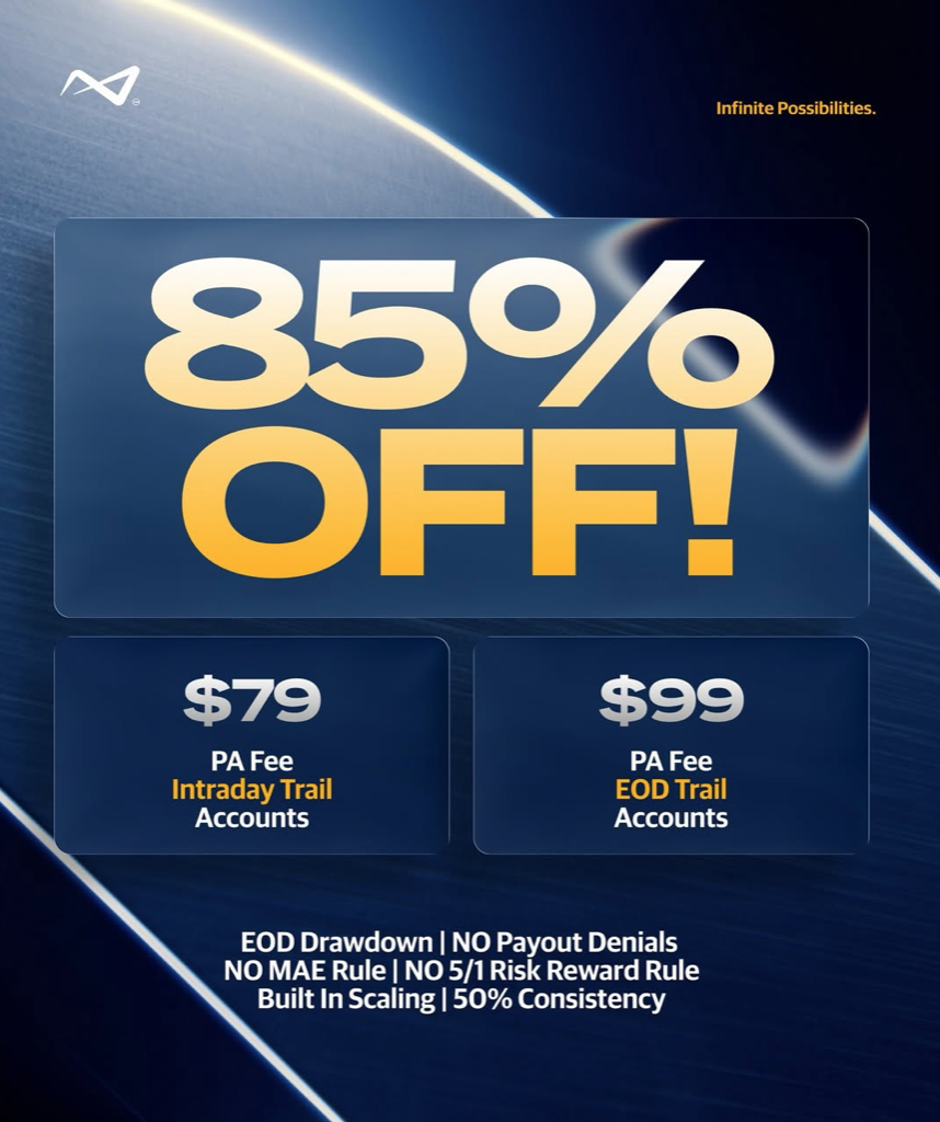 The offer also highlights discounted Performance Account (PA) activation fees. Traders who qualify for funded accounts can activate Intraday Trail accounts for $79, while EOD Trail accounts are listed with a $99 activation fee. These reduced fees form part of the broader offer tied to the firm’s discounted evaluation offers.